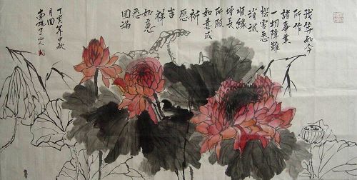 心澄:题“罗汉住世利个人,绘画赞颂功无量”45X170CM