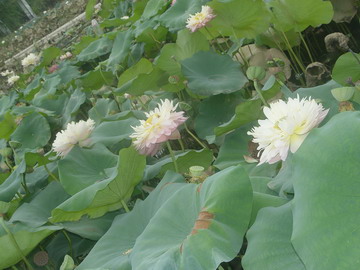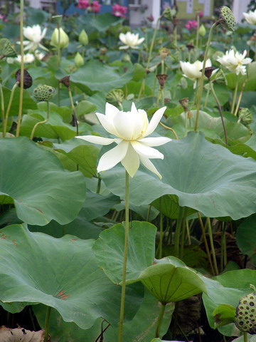 走进“艺莲苑”,数百亩的莲花印入眼帘,不是一花独放,也不是红白分明,而是一个五彩缤纷、百花齐放、百色交融的花花世界,把我们带进了一个博大的“莲”的世界。工作人员介绍:“艺莲苑”是由珠江镇五里村农民专家丁跃生教授创办的大型荷花基地,他也是我们中国花协荷花分会常务理事。“艺莲苑”莲花的品种已经超过七百余种,睡莲、碗莲、荷花、并蒂莲、年光莲、千瓣莲、菩萨华等等,最珍贵的品种就是千瓣莲,蓓蕾虽不太大,但能出乎大家的意料,重重叠叠竟有四千多个花瓣。