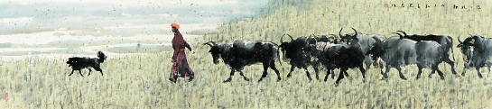 从油画到连环画,从速写到水彩画,从工笔重彩到水墨写意,从地方研究生到军旅画家,从主题性创作到艺术的个性追求,他涉猎的画种非常宽广,他生活的阅历非常丰厚,他创作的题材非常广博,他发掘的审美内涵也非常深入。鉴于他取得的多方艺术成就,1997年后,他被任命为中国美术家协会分党组书记,当选为中国美术家协会第五届、第六届主席团常务副主席,当选为中国文联副主席、中国美术家协会主席、联合国教科文组织下属国际造型艺术家协会主席等职。作为中国美术界的重要领导,他的开拓精神和务实作风使中国美协在世纪之交的社会变革与转型中发挥了巨大的作用,他的宽广胸襟和真诚厚道赢得了广大美术家对他的信赖与赞誉。当然,站在中国美术界那样一个制高点上,他的胸襟、眼界与视野也更加开阔,俯瞰全局,把握方向,他更具有一种艺术的社会担当意识和时代的使命感。在他《晚风》、《小米加步枪》、《人民公仆刘少奇》、《朱德与史沫特莱》和《不畏蜀道难》等作品中,我们可以阅读到他怎样通过自己的画笔来表达他对于现实主题与历史主题的思考。这些作品不仅充分体现了他自己的艺术追求与个性风采,而且也塑造了当代审美中的中华民族的英雄形象。