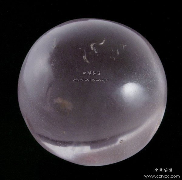 透明无色。圆球形,光洁透亮,有多处小疤痕。