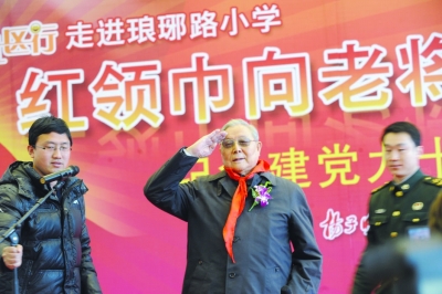 迄今规格最高的一场“扬子社区行”活动,昨在南京市琅琊路小学室内体育馆内举办。南京军区原司令员向守志上将、南京市教育局工委书记徐传德、共青团南京市委副书记郑玲玲等领导同志,出席了这场“红领巾向老将军致敬”的主题活动。