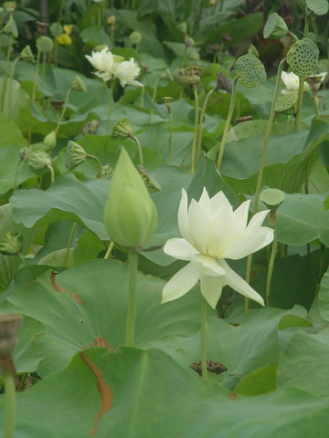 走进“艺莲苑”,数百亩的莲花印入眼帘,不是一花独放,也不是红白分明,而是一个五彩缤纷、百花齐放、百色交融的花花世界,把我们带进了一个博大的“莲”的世界。工作人员介绍:“艺莲苑”是由珠江镇五里村农民专家丁跃生教授创办的大型荷花基地,他也是我们中国花协荷花分会常务理事。“艺莲苑”莲花的品种已经超过七百余种,睡莲、碗莲、荷花、并蒂莲、年光莲、千瓣莲、菩萨华等等,最珍贵的品种就是千瓣莲,蓓蕾虽不太大,但能出乎大家的意料,重重叠叠竟有四千多个花瓣。