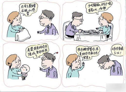 这些源自生活的真实场景,一下子吸引了网友:看你的漫画,就像在看自家的故事。网友“may5122”还进一步解释说,自己生了孩子后,家里的气氛变得和漫画中的一样:我变得啰嗦了,为了宝宝可以去学习炒菜,学习理财,逛街总爱逛童装店;老公总是被我指挥来指挥去的,我总嫌他这里做不好,那里做不好………”