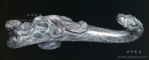 。 28、东晋 玉带钩.jpg (36.28 KB) 2010-4-2 20:54 。 28、东晋 玉带钩 长9.5,宽1.8,高2.3厘米 江苏省南京市仙鹤门外仙鹤山6号墓出土,现藏于南京市博物馆 墨绿色玉质,局部沁泽,器形完整,钩体舒展,钩腹隆起,钩首为一回首的螭龙,钩腹前端高浮雕小螭龙,作游动状,钩两侧细线刻变形云纹,下出蘑菇状纽。