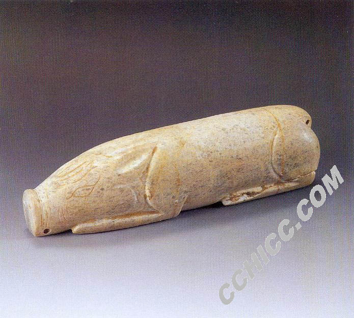 。 37、玉带钩 六朝.jpg (66.25 KB) 2010-4-2 20:54 。 37、玉带钩 六朝 长7.1,宽1.47,高2.24厘米 安徽省当涂县青山六朝墓出土,现藏于安徽省文物考古研究所 白玉,微透明,上有土斑,“S”形,圆雕凤首,呈回首状,采用浅浮雕勾勒出喙,鼻,眼,凤身为椭圆形,浅浮雕刻出羽翅及尾,背面扁平,线刻尾羽,正中凸出一圆饼形扣,上线刻一花瓣图案,器型造型优美,线条流畅,雕技精良。