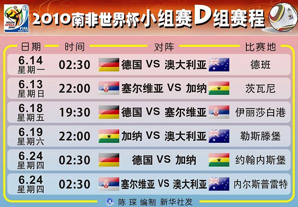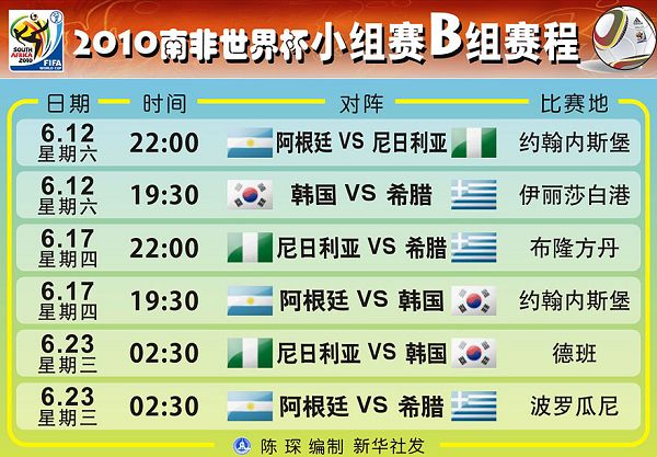 2010南非世界杯小组赛赛程