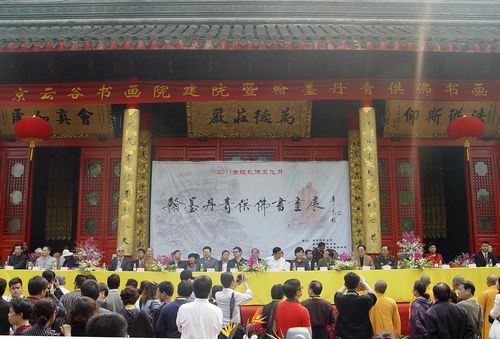 4月15日上午9时30分,作为“2011金陵礼佛文化月”的先期预热活动,由南京栖霞古寺、南京市佛教协会、南京市民族宗教事务局主办,南京市云谷书画院承办的“翰墨丹青供佛书画展”在栖霞寺地藏院举行。