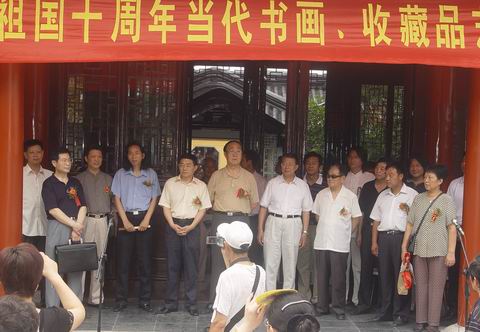 “庆祝香港回归祖国十周年当代书画名家邀请展”于二OO七年七月一日上午十时在南京静海寺纪念馆举行,出席活动的领导有原南京军区副司令员郭锡章将军,原南京军区副政委兰保景将军,江苏省红十字会常务副会长周加才同志,南京市下关区文化局副局长孙威同志,南京市下关区政协王自能同志,南京市文联书画研究院秘书长、国家一级美术师、南京静海画院名誉院长刘宇甲先生,南京市文联书画研究院副秘书长、国家一级美术师黄庭海先生,南京市文联书画研究院副秘书长、高级画级李正刚先生,南京静海寺纪念馆馆长田践同志,洛阳牡丹书画院副院长、南京静海画院名誉院长罗玉祥先生,中国书协会员、山东省青州市书协副主席武晓临女士,南京芳草园书画院院长蔡志芳女士,南京艺海潮书画院院长方军先生,南京艺海潮书画院秘书长夏志诚先生以及社会各界人士、书画名家、企业家等三百多人参加开幕式。
