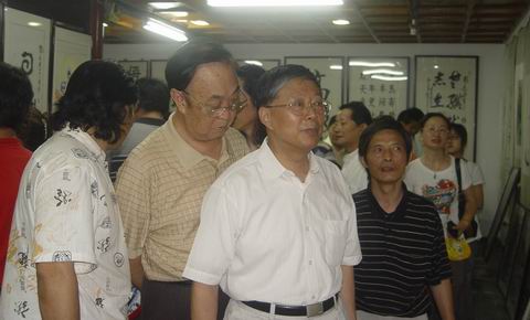 “庆祝香港回归祖国十周年当代书画名家邀请展”开幕式结束后,南京静海寺纪念馆田践馆长、南京静海画院刘会德院长陪同郭锡章将军、兰保景将军、以及省、市、区领导、艺术家们参观这次邀请展。。