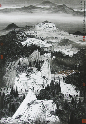 薛亮:不敢当,古城砖受法律保护。(笑,抽烟。)不过,你用谢赫的画理对照我的画,你会发现笔墨意境、移情造景等等说道我都有,没有这些就不叫中国画了。传统绘画的语言模式、笔墨图形都有一定的精神指向性,现代的画家能否合理地重新编排组合,传达一种符合时代审美取向的新的意蕴。就像你们写文章,需要良好的文字感觉和书写功底,包括修辞、技巧,否则既使激情澎湃,啊了半天也出不来好文章。