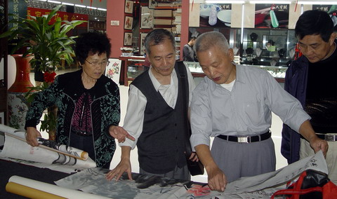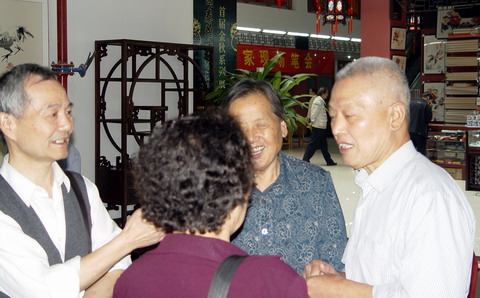 . 高山先生与来宾交流书画技艺 .