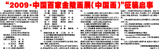 “2009·中国百家金陵画展(中国画)”征稿启事
