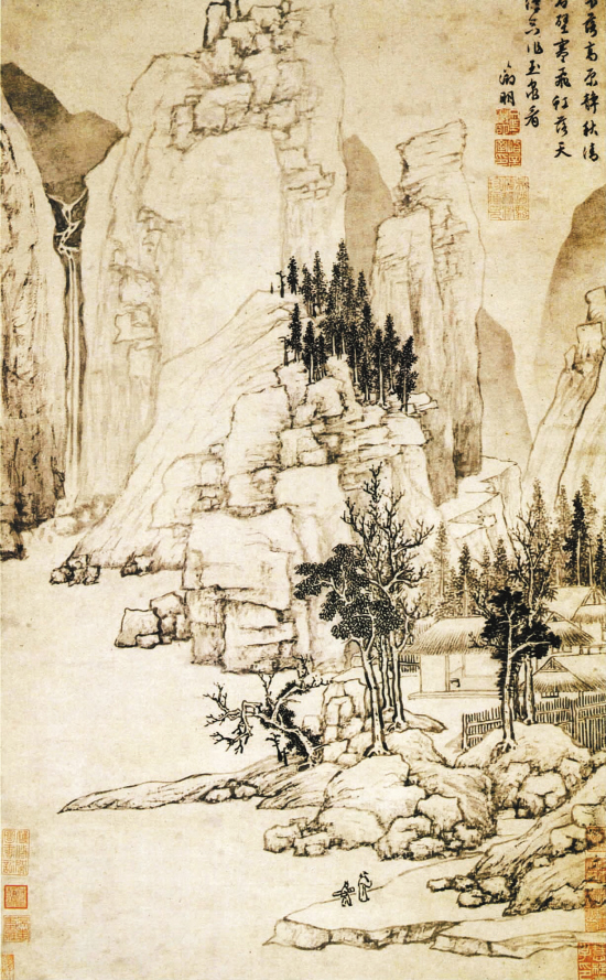 文徵明1547年作《石壁飞虹图》(真迹 上博藏)