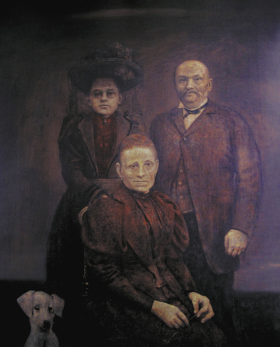 图像依附于形式,这是由每个人的独特境况所决定。扎布罗夫以作品向我们提供过去的诱惑,以常见的事物引领我们跟随他进入对生命根源的迷惘。有些是显而易见的——一件薄纱裙、一种姿势、一种不变的静态、一件玩具,都混合入他的画布,模糊以至于使我们难以辨认,不得不更近地去观看。他把一些淡褪的色彩,刮擦去的痕迹、手迹等诸多因素聚集在一起,通过画作表现出来。他沉湎于人物的古老宿命,构造虚幻的绘图。他抓住、吸收并且控制它们,组成了家庭相册集,建造了家族系谱,并将这些虚构的家族系列肖像,挂在想象城堡中的画廊。
