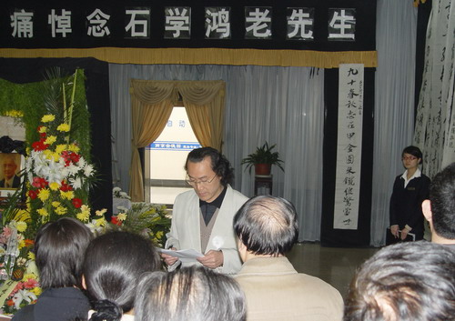 中国著名篆刻大师、书法石学鸿先生追悼会今天上午八点三十在南京石子岗殡仪馆举行,追悼会由江苏省书法家协会副主席、南京印社社长徐利明先生主持,石学鸿先生生前亲朋好友二百多人前来送行。