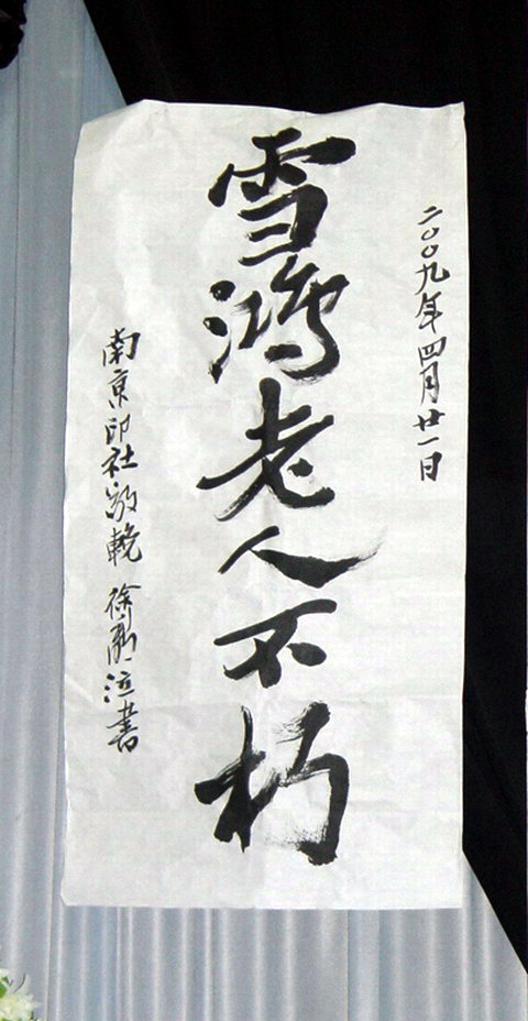 江苏省委统战部、江苏省政府办公厅、中共江苏省委台办、江苏省书法家协会、江苏省文史研究会、民革江苏省委员会、江苏省台属联谊会、中国标准草书学社、南京云锦研究所、南京静海画院等单位,文化艺术界尉天泄、言恭达、米云春、俞律、萧平、徐自学、苏金海、徐利明、胡剑明、胡学义、候国新、吴欣宇、王宝林、常国武、张雪融、张玉英、成懋冉、赵立军等送了花圈花蓝。