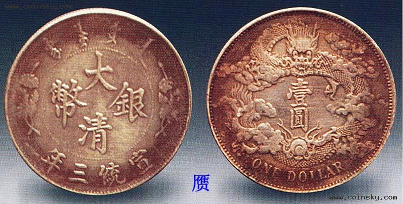 大清银币长须龙壹圆,清宣统三年(191 1)天津造币总厂铸。当时清政府欲统一币制,聘请海外高级技师精心设计制造了这套宣统三年大清银币,计有六、七种版式,长须龙是其中之一。新币刚试铸成功,正逢武昌起义,于是大部分新版银币胎死腹中,只留有少量样币。长须龙因背面龙首之须特长而得名,属于试样性质,因图案精致、存世稀少而受人重视。