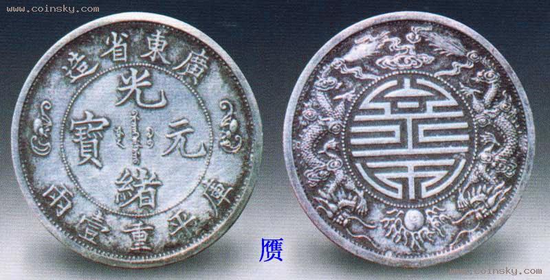 广东寿字壹两银币,铸于光绪三十一年(1905)初,为纪念慈禧七十寿辰而铸。由于正值户部推行一两本位制银币,所以这枚寿字纪念银币亦用“库平重壹两”的本位制纪重。寿字壹两纪念银币制造精致,共有两个版别,主要区别在于银币两侧蝙蝠的图案上。由于户部推行的一两本位制银币最终并没有实施,因此此枚纪念币并没有公开发行,属试铸币。