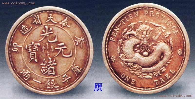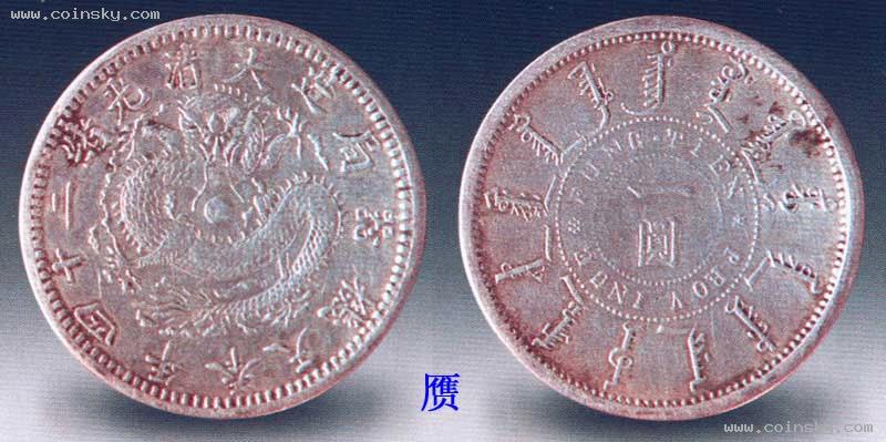 奉天一两银币,铸于光绪二十九年(1903)。据有关资料统计,该年份奉天省共铸有两种版本银币,一为库平银一两。另一为库平七钱二分。但二者铸数不同,传世实物奉天一两仅见一枚.奉天七钱二分偶尔尚能见到。若以实物相比较,直径大致接近,可是厚度差别较大,重量亦不同,前者重达37克左右,后者为27克左右。