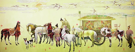 赵文元 待巡图(秦始皇七名马) 400×130cm 2009年