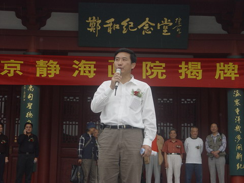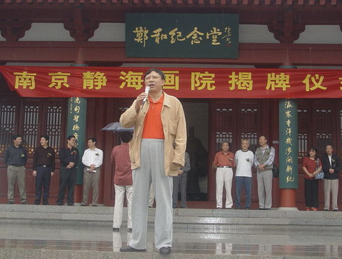 在丹桂飘香,喜迎国庆的前夕,南京静海画院揭牌仪式于2006年9月30日在南京市下关区静海寺隆重举行,南京市新闻出版社党组书记施正东、下关区有关部门领导吴有康、姜东林、高淳县农工部部长夏功保、高淳县建设局戴正森主任、特邀著名书画家、艺术家:俞律、吴国亭、刘之光、刘宇甲、岳鸿武、李斌炎、杨远威、南京芳草书画院院长蔡志芳、南京江东诗书画院院长方云岫和全省书画界人士200多人出席揭牌活动。