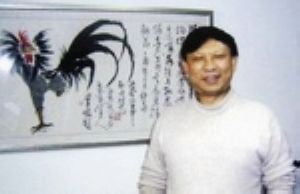 记者翻看了一些施正东画鸡的代表作。这其中,既有施正东画鸡、著名书法家管峻题字,双璧合一的《金鸡独立图》,又有大公鸡立在一丛鸡冠花旁的《冠冠相映图》,更有一张匠心独运的,充满温情的《相见恨晚图》。画鸡名家很多,但表现的多是雄鸡独立,或者两鸡争斗图,因此这幅《相见恨晚图》显得十分特殊。施正东说:“你看,画面上,一公鸡、一母鸡,无意中邂逅,相视而歌,真有相见恨晚之意。这也包含了我对画鸡的理解。我想表现的不单单是鸡威武好斗的一面,更是鸡少为人知,充满温情、感情交流的另一面!”金陵晚报记者于峰
