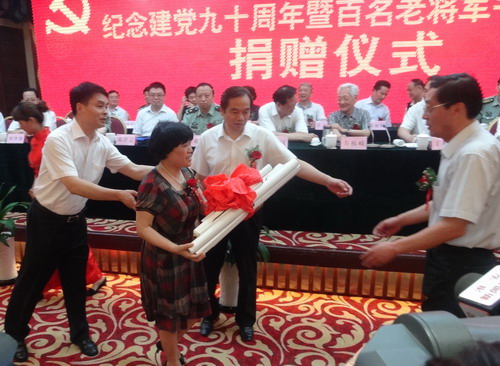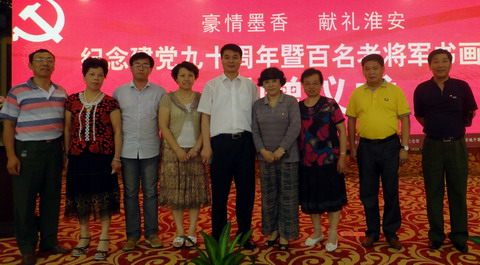 6月26日下午,百名老将军书画捐赠活动笔会在市区举行。南京军区原政委方祖歧上将、江苏省军区原副司令员许志龙少将、南京政治学院原副院长路加模少将、南空装备部原部长乔永立少将、兰州军区空军司令部原副参谋长王东玉少将等老将军,与淮安书画家一起泼墨挥毫,共同纪念建党九十周年。
