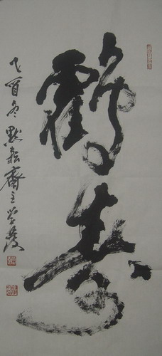 在中国画的各种不同表现形式中,花鸟画水墨大写意是最具有抒情性、创造性和艺术生命活力的。这种画法将原来画家的精神主体往往通过所画之物的人格寓意来展现。众所周知,大写意是一种恣肆、狂放的画风,真正出色的大写意作品尽兴时,似夹雷霆万钧之力;落墨处,常具惊心动魄之奇。画家的主观情感则被直接破译为相应的物化轨迹,无需借助于模仿物态的形色作为唯一的依凭。或换言之,在大写意中,形与色是为精神服务的,要服从于画家的主观意志和精神诉求。只要有需求,不但可取舍,可详略,而且可夸张,可变形,绝不斤斤计较于牝牡骊黄之形色,这样就进一步打破了被动描绘的框范和捆束,在更大的范围内和更深层次上获得了创作的自由。钱学发善于将自己乐观豁达的人生观和热爱生活的情感体验融入作品之中,无论花鸟鱼虫、草木藤萝,都是注重于对物象神似的追求,极富时代气息和人生意趣。其特点是以没骨点垛作装饰性构图,用笔沉静,力量、速度大体平均,其韵律主要依靠物象不同的色彩、形状的组合而获得体现,而少有轻重疾徐、顿挫转折的节奏变化。花叶缤纷烂漫,而格调文静娟秀,为传统画法中所未见,又能为雅俗所共赏,洵艺苑之奇葩、玉台之清品,尤以小幅更为精到。其中锋篆意入笔、侧锋辅之,用笔轻徐疾涩,墨色染泼相兼,极富浓、淡、干、湿等墨色变化,设色稳重中又有绚烂。公鸡的侧锋单笔有雄健、朴拙之趣。在层次井然的红梅簇拥之下,一只雄鸡正昂首阔步,其英姿勃发的风貌,桀骜不驯的个性,神采奕奕的态度,使人不自觉间有振奋进取之观感。他的写意花鸟画与书法金石的修养成就分不开,他精于大篆,落笔雄迈,黄钟大吕,金声玉振,书画金石相得益彰,在当代画家中,尤为难得。