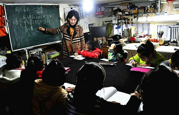 雨花台中学高级教师肖长苏老师为宣和书画班小朋友教国际音标