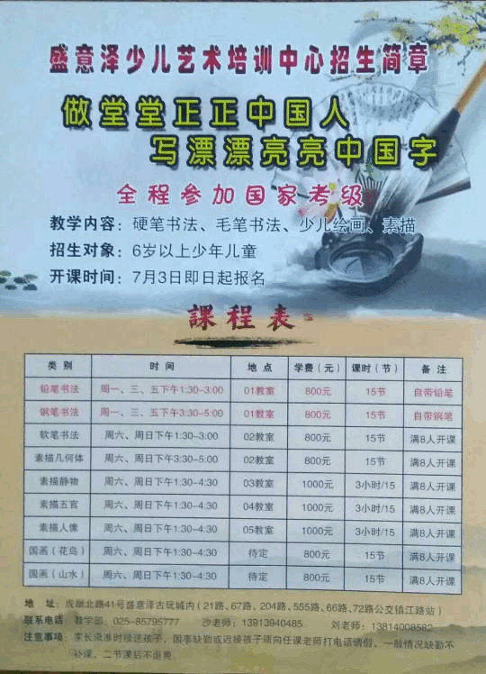 盛意泽 艺术馆 少儿硬笔书法 夏季 招生