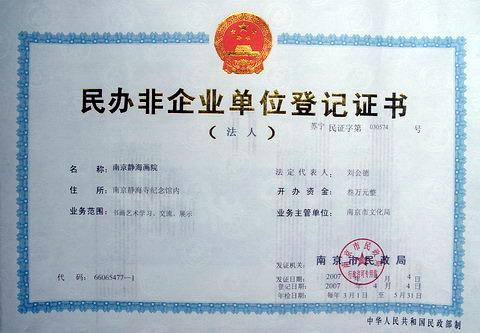南京静海画院是根据国家法定程序由南京市文化局审批,南京市民政局注册单位,登记证号为:苏宁民证字第030574号。南京静海画院是得到政府有关部门的支持,是由书画界知名艺术家及热爱书画艺术的各界人士共同组成的艺术团体。画院宗旨是为了更好地弘扬中华文化艺术事业,继承中国书画艺术的优良传统。南京静海画院院址设在南京静海寺纪念馆内。