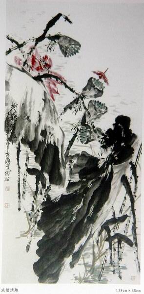 作品《池塘清趣》138X68CM