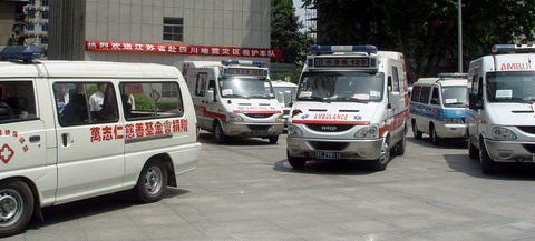 我省5月14日凌晨1时20分,江苏省卫生厅接到卫生部的紧急通知,要求江苏省卫生厅迅速组织医疗救护车队支援四川地震灾区。通知就是命令,卫生厅立即行动,连夜通知各市卫生局。一方有难,八方支援,各市卫生系统接到通知后立即行动,救护车司机们也纷纷主动请缨,要求赶赴四川灾区。经过各方权衡,卫生厅组建了由50辆救护车、100名驾驶员组成救护车队。