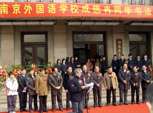 “南京外国语学校成懋冉同学书法艺术展”二OO八年三月六日上午十时在江苏省美术馆举行,原江苏省文化厅副厅长、江苏省国画院赵绪成院长等数百位书画界来宾参加了开幕式,“南京外国语学校成懋冉同学书法艺术展”从三月六日至九日为期四天。