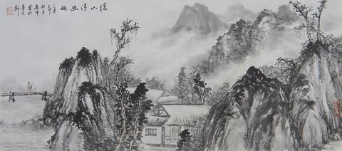 国画“溪山幽趣图”68X136CM、国画“歧山胜境”136X68CM