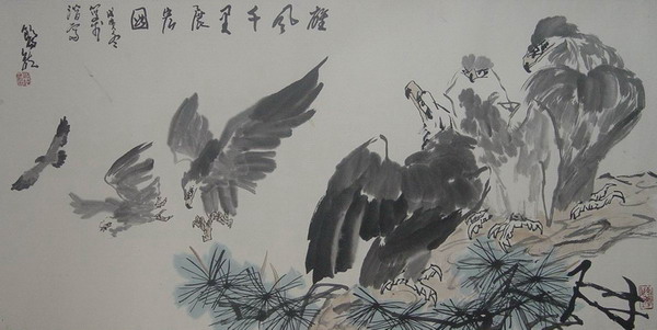 欧阳龙:“雄风千里展宏图”136X68CM