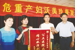 2007年7月,时年24岁的沭阳产妇沃美玲因产后大出血被紧急转送到省妇幼保健院进行抢救。由于休克时间长,沃美玲出现了严重的多器官功能障碍综合征,生命岌岌可危。更出人意料的是,产妇血型为稀有“熊猫血”,且血色素仅为每升2.8克。只要有一线希望,就要全力抢救!院方立刻多渠道展开征血行动。很快,爱心市民就捐献了近一千毫升新鲜血液。献血者越来越多,在随后的50多天里,经过精心会诊救治和悉心照顾,沃美玲终获新生,谱写了“爱的奇迹”。临别前,这位质朴的农村姑娘深情地说“感谢南京,它给了我第二次生命。”