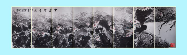 刘会德先生的个人艺术语言精微、独到。他那雄健的画风,一扫花鸟画坛自古多轻柔的旧貌。不仅提炼出了一套独特的“密集的全景式”构图原则,用以表现盛大、雄丽的视觉图景,而且还用细腻的笔触将勃勃向上的生命气息融入了画面。用传统的笔墨和全景式构图,把现代构成和现代生活的感受融入绘画,创新了中国画的形式语言。刘会德先生将充满勃勃生机的荷花作为自己的主要绘画母题,不断开掘和突破了原有的传统荷花题材的同时,向着花鸟画的更高境界迈进,其作品通过特殊的视角、微妙的光色变化的色墨运用给人以视觉的冲击力,传达出画家在面对当代激情时代油然而生的激越之情。