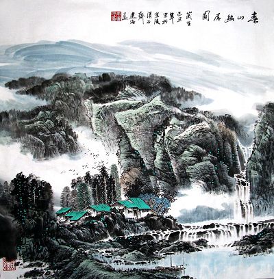 朱建强:“春山幽居图”68X68CM