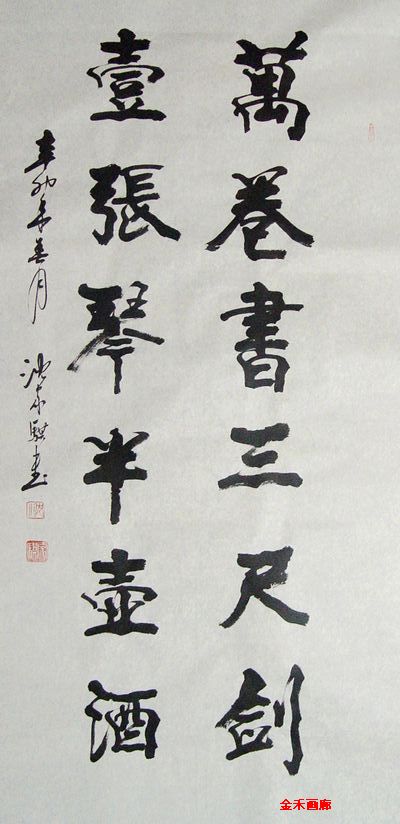 沈家骐:“万卷书三尺剑壹张琴半壶酒”136X68Cm