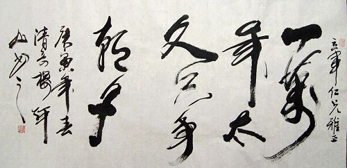 徐茂然先生又遍习历代名家作品,五代杨凝式,明王铎。清黄道周,康有为,赵之谦,何绍基等,遂得悟真行草之法,国画根基坚实,尤其即兴作写意花鸟、山水、笔墨酣畅,富有意蕴,以雅逸清纯为基调。